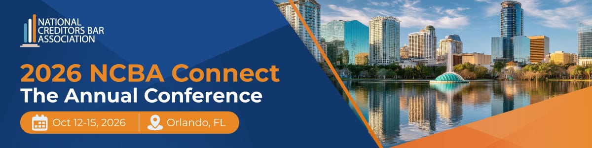 Join over 850 of your peers in the creditors rights industry at NCBA Connect 2026, held at the Renaissance Orlando SeaWorld.